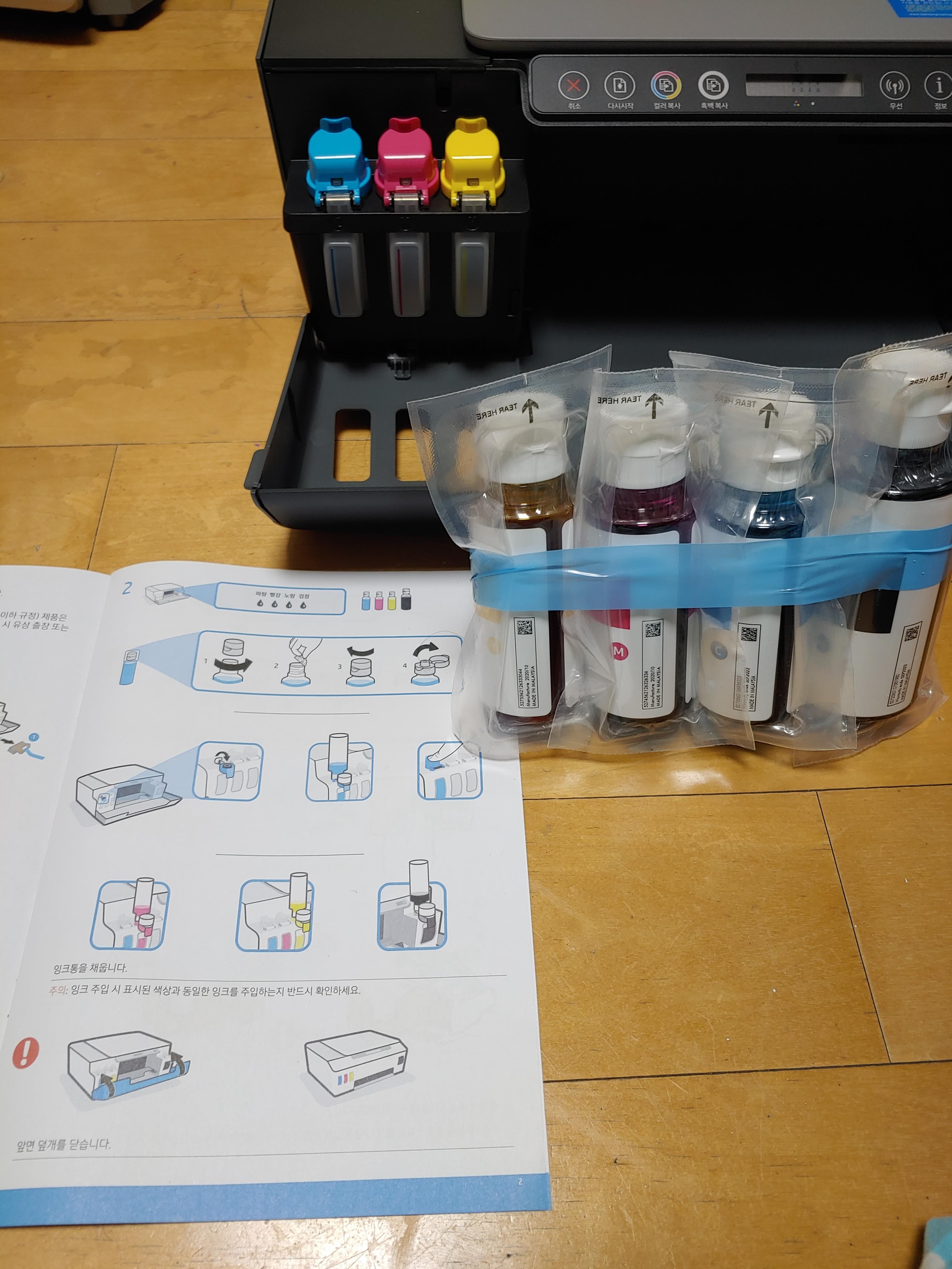 삼성 흑백 레이저 프린터를 오래 사용하다가 컬러 출력이 필요하게 되어 급 검색 후 캐논 브라더 앱손 삼성 HP 등의 잉크젯 프린터 중 가격 적당 AS 적당할 삼성 무한잉크 프린터를 주문하게 되었다.