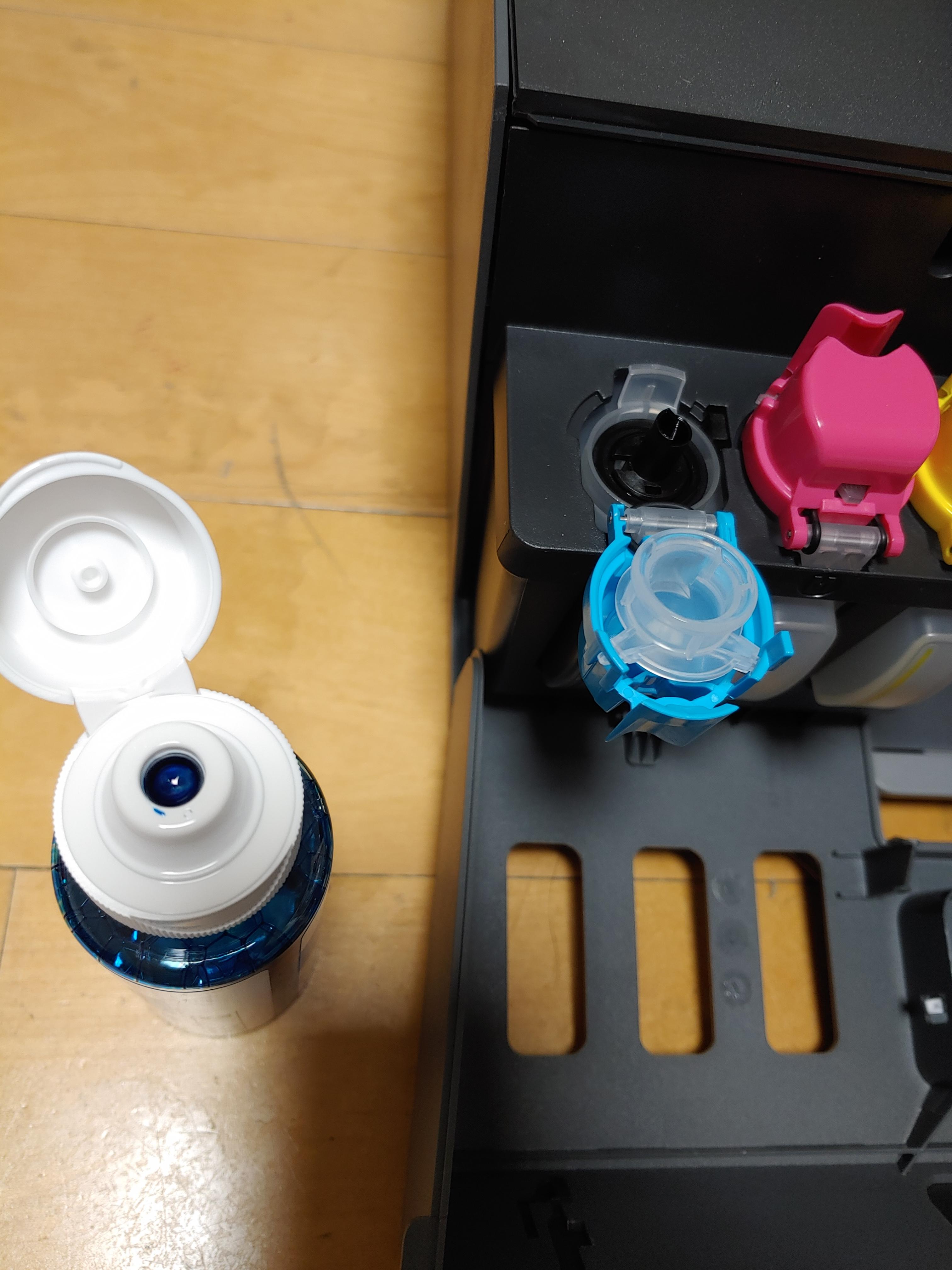 잉크병을 주입구에 꽂아 잉크통에 주입한다.
