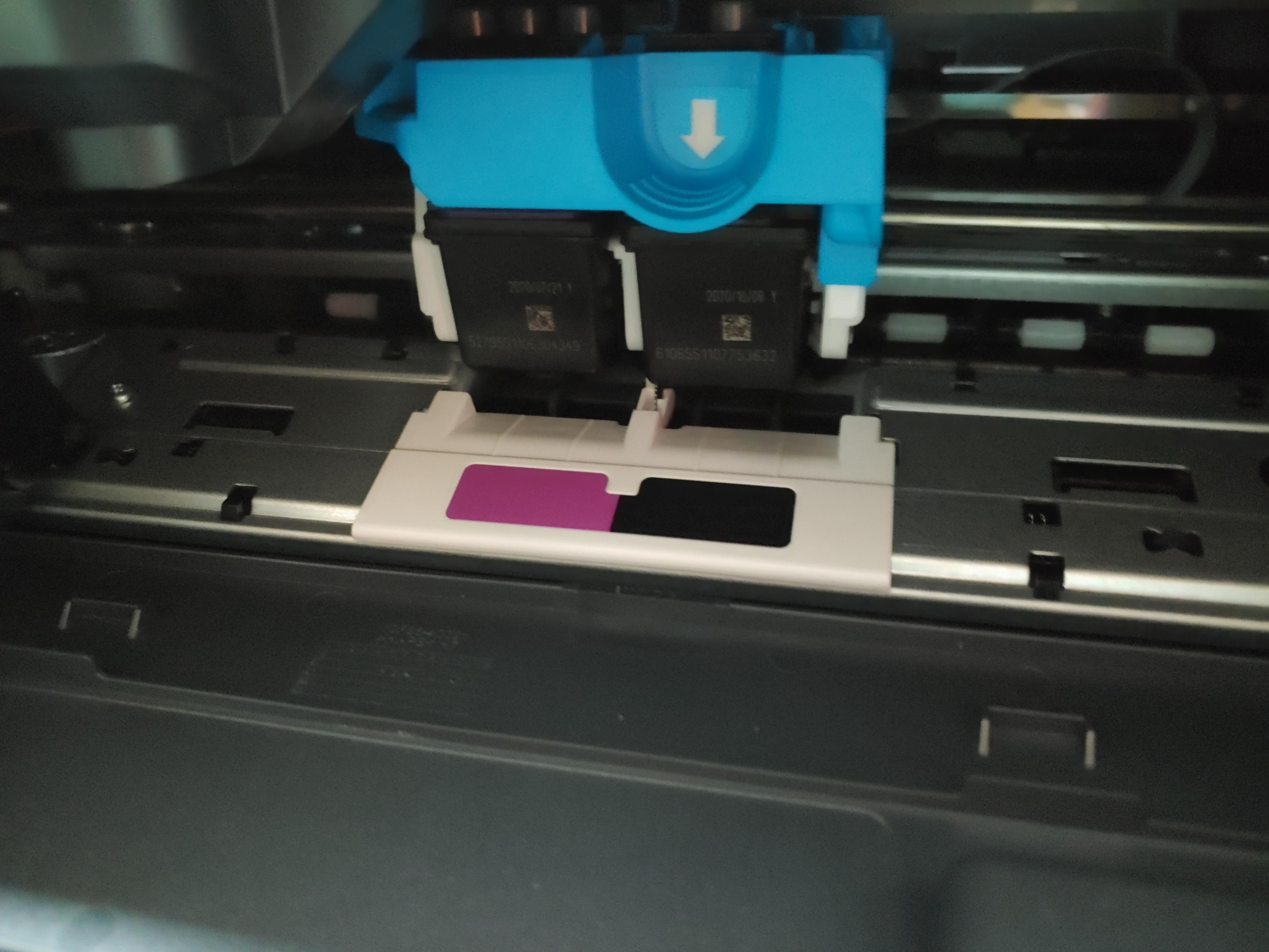 프린터 헤드의 문제라고 하여 다시 확인했더니 좀 더 깊게 눌러서 꽉 끼워 줘야 되는데 고장 날까 봐 살짝만 밀어 넣었던 것이 문제였다.